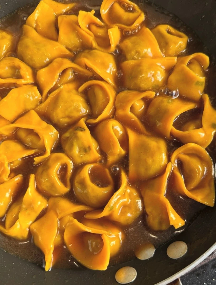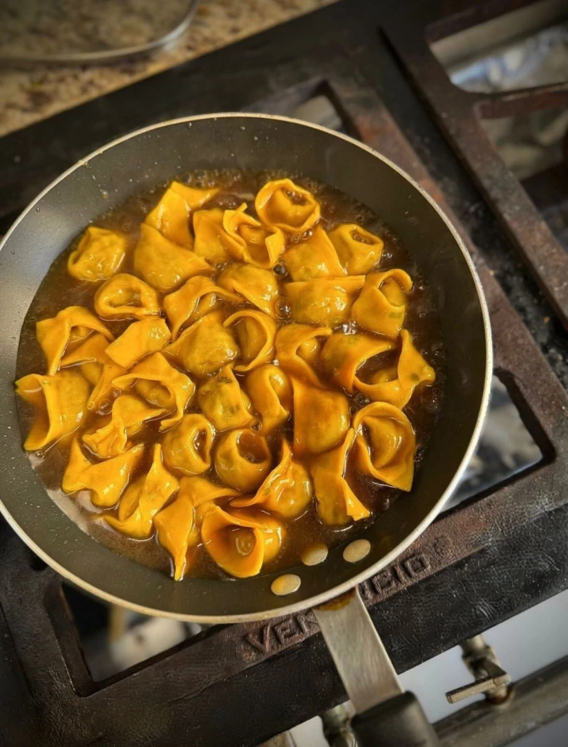 Massa artesanal delicada, feita com abóbora cabotiá, com textura fina e elástica, recheada com ossobuco cozido lentamente com ervas e vegetais. O sabor intenso da carne, combinado com a suavidade e leve adocicado da massa, traz à mesa a essência da culinária italiana.